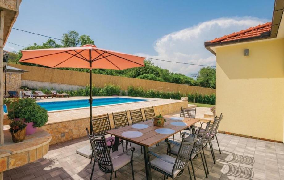 Okućnica kuće se sastoji od prekrasnog bazena veličine 40m2 te vanjske kućice za odmor sa roštiljom i stolom za ručavanje. U sklopu objekta nalazi se i privatno parkiralište.