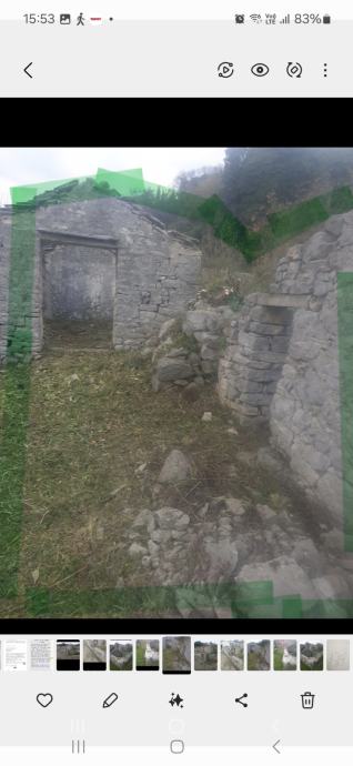 Na građevinskoj čest. zgr. površine 61 m2 se nalazi rušebina s okučnicom i na čest.zgr površine 76 m2 se nalazi 2 ruševone s okučnicom. U jednoj ruševini je gustirna koja može biti crna jama. Uz nekretnine prolazi lokalni put, voda i struja. Nekretnine se nalaze u Žrnovu, Prvo selo