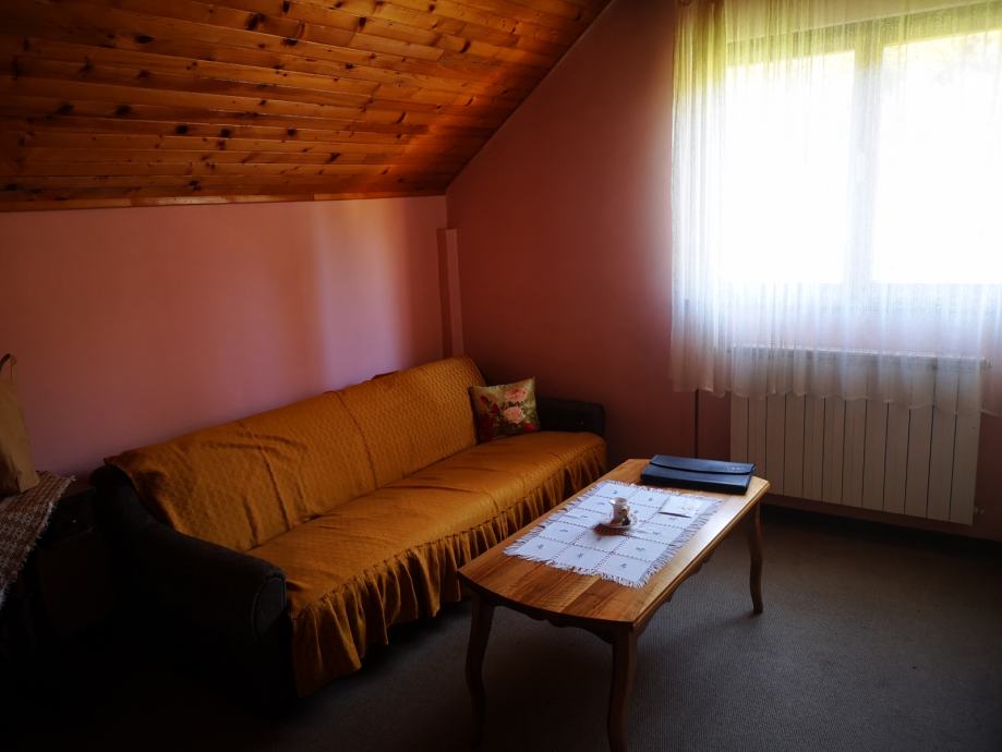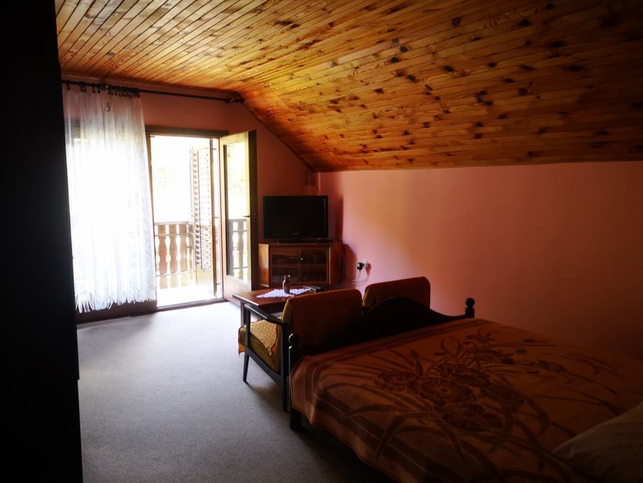 Kat kuće na koji se ide drvenim stepenicama se sastoji od 3 velike sobe od kojih dvije imaju balkon te imaju pogled na netaknutu prirodu i kupaone s kadom i wc-om.
