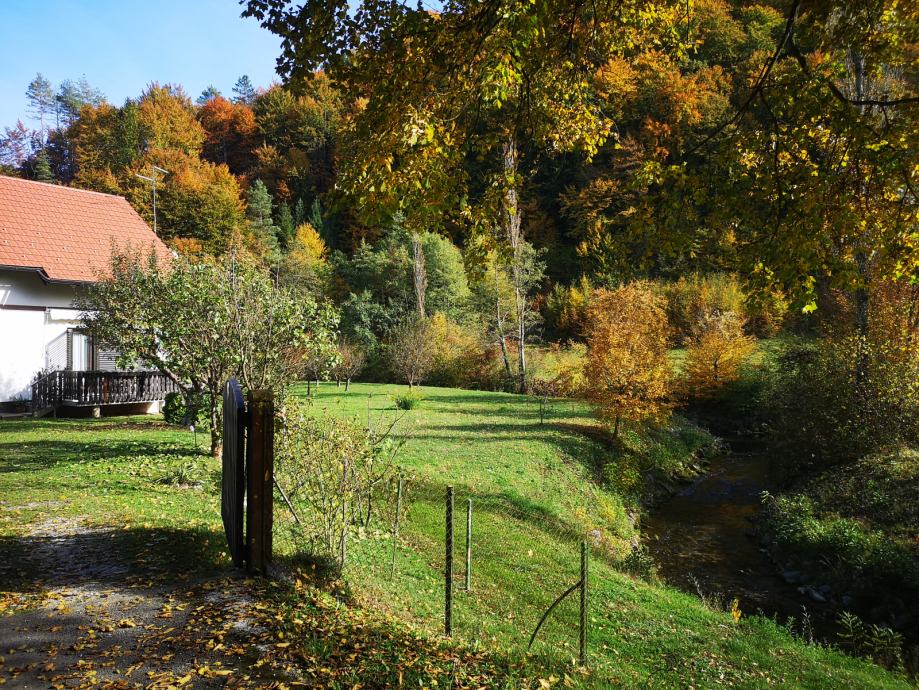 Zemljište (površine 3298 m2) se nalazi na poluotoku kojeg sa 3 strane omeđuje prekrasna planinska rijeka Kupčina koja NIKADA ne poplavljuje dvorište. Dvorište je potpuno ograđeno. Susjedi su na pristojnoj udaljenosti.