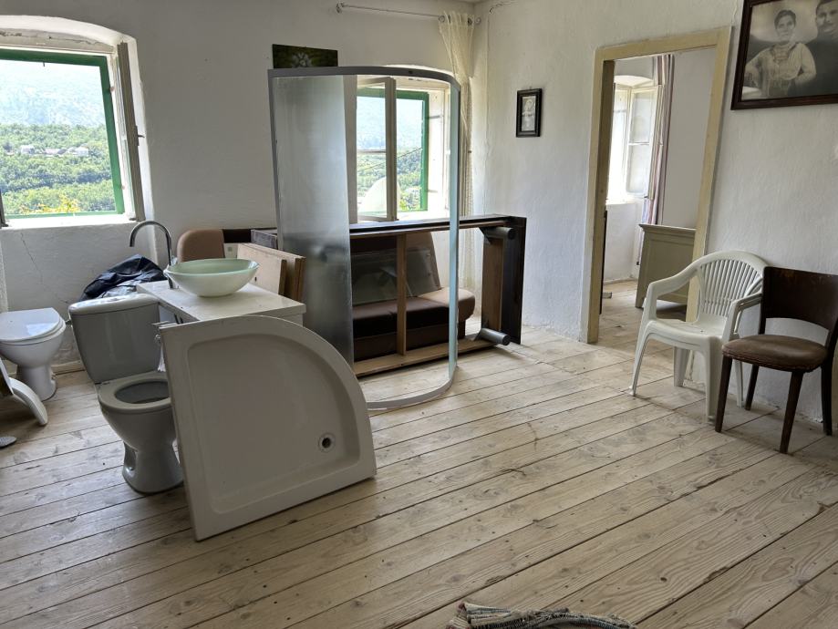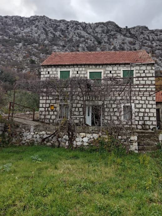 Predivna kamena Splitsko-Dalmatinska kuca na vrhu brdica s pogledom na cjelo selo. Idealno za familiarno življenje ili za seoski turizam s 1000 kvadrata okućnice. Sve 1/1. Uredni vlasnički list. Dovoljno mjesta za bazen i ostale aktivnosti na kaskade polja. Prvi susjed pet minuta hoda udaljen. Dovoljno privatnosti ako hoćete bilo koji business da napravite jer je idealna lokacija. Plaža Omis je 15 minuta udaljena do Splita je 25 minuta.