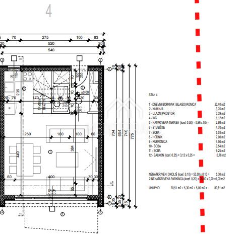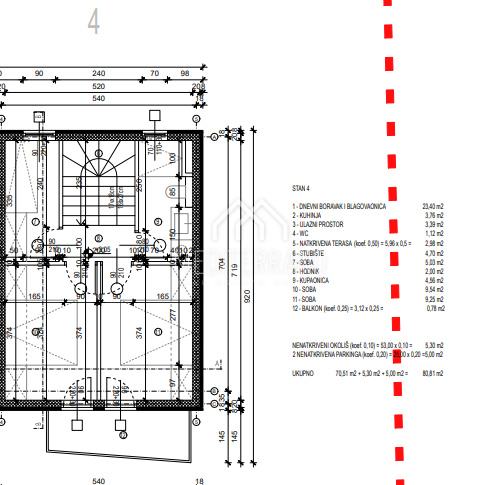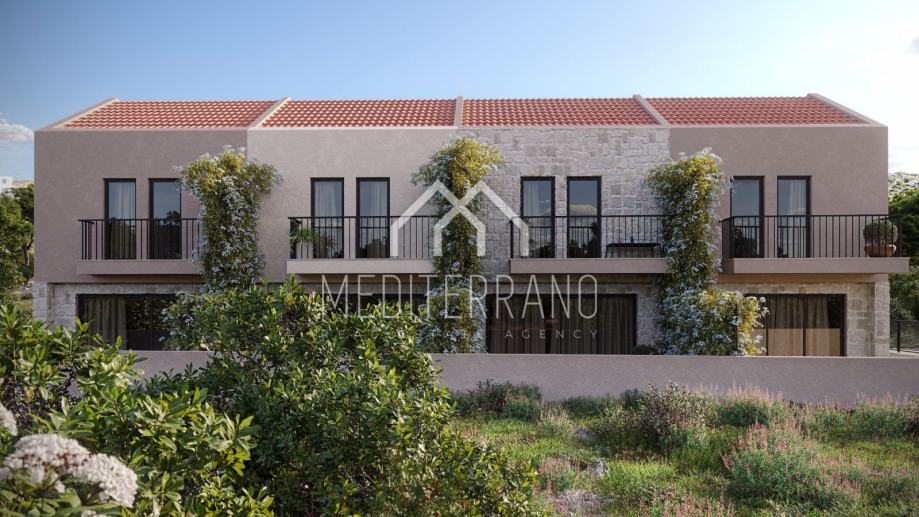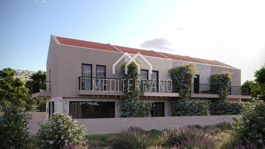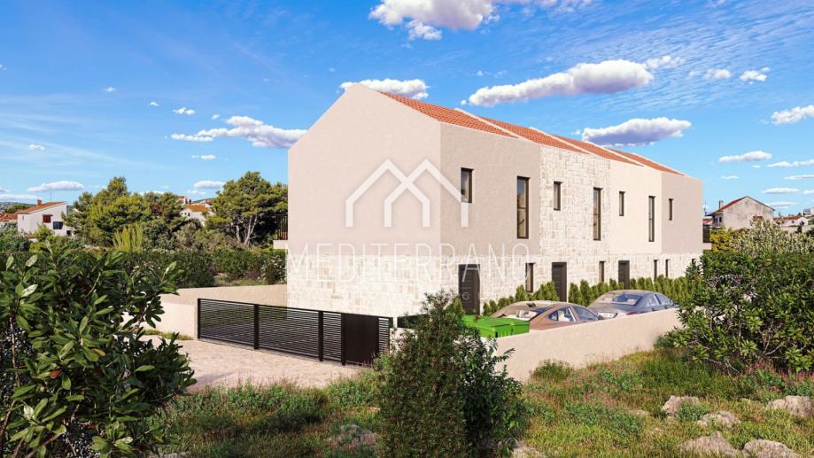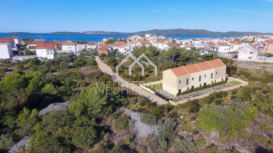 Prodaje se etažni stan, dio kuća u nizu na top lokaciji u mjestu Brodarica, . Stan se sastoji od prizemlja i prvog kata, a u prizemlju imamo: ulazni prostor, kuhinju s dnevnim boravkom, wc te unutarnje stubište koje vodi na prvi kat gdje se nalazu 3 spavaće sobe iz kojih se pruža pogled na more, kupaonica te balkon od 3,12 m2. Stan ima ukupne stambene površine od 66,75 m2, te natkrivenu terasu u prizemlju od 5,96 m2 i dvorište od 53 m2. Stan ima i tavan površine 37 m2 koji se može iskoristiti kao dodatan prostor za pohranu, te mu pripadaju i 2 parkirna mjesta.
