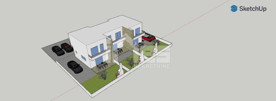 Na prodaju je kuća sa tri stambene zasebne jedinice u mjestu Povljana na otoku Pagu. Ova novogradnja sastoji se od 150m2 tlocrtne površine koja se zbraja na prizemlje i kat. Odnosno kao tri kuće u nizu, lijeva, srednja i desna. Svaka jedinica ima uređen vrt te po dva parkirna mjesta. Gradnja opekom 25cm te izolacija EPS Stiropor 10 cm, kao i PVC stolarija osiguravaju A+ certifikat.