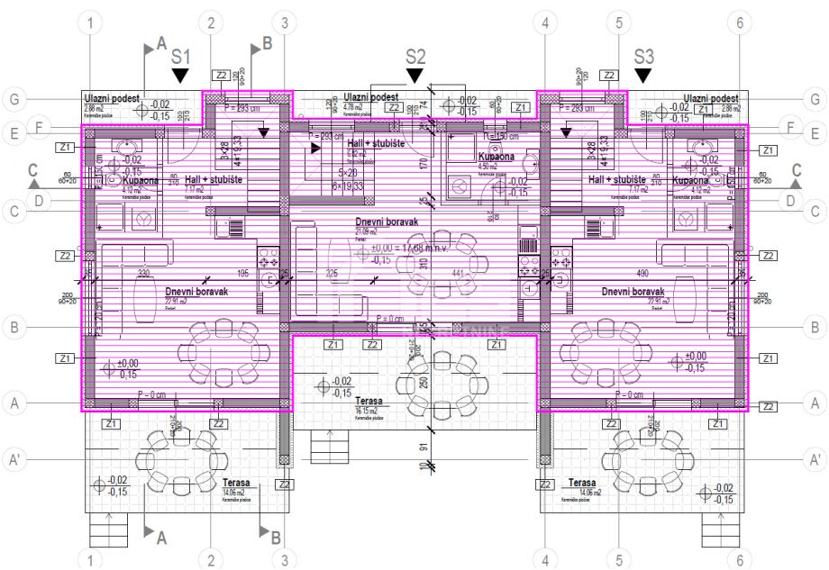 Kuća krajnja A - površina vrta 100m2, stambena površina - 83,44m2 - cijena 300.000€