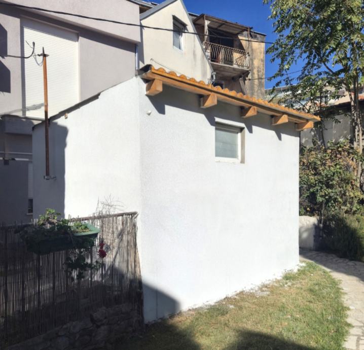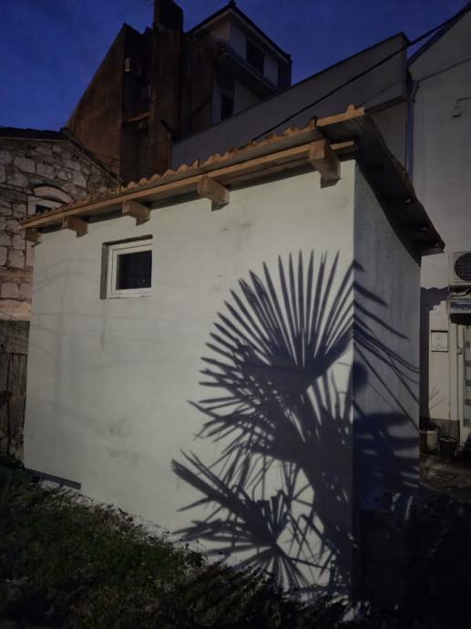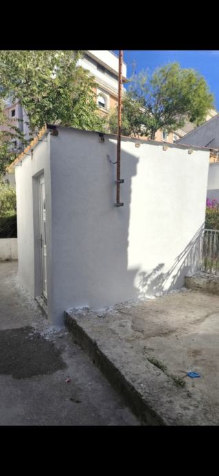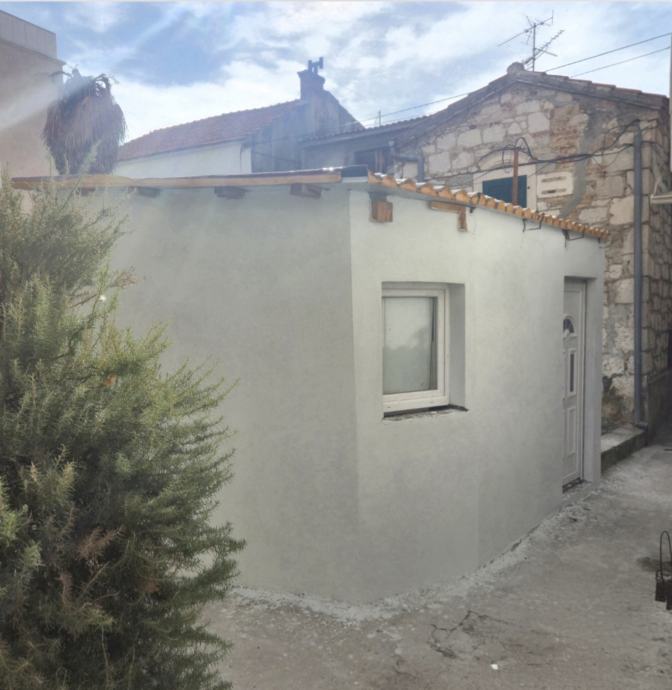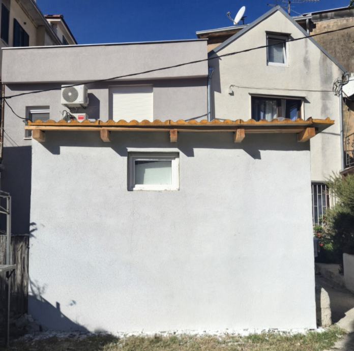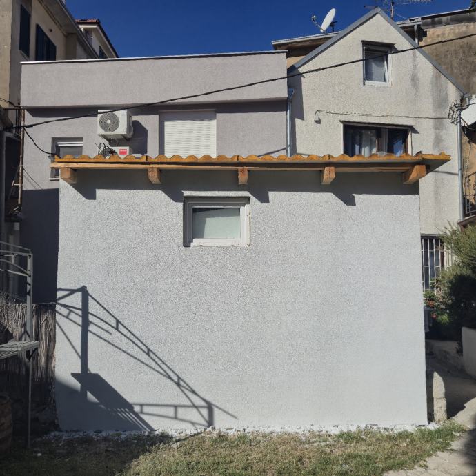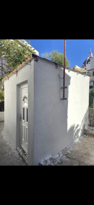 Samostalna prizemnica od 12 m² u centru Splita s dovršenom fasadom i krovištem, uz predanu glavnu projektnu dokumentaciju te postupak izdavanja građevinske dozvole za dodatnu etažu i potkrovlje.