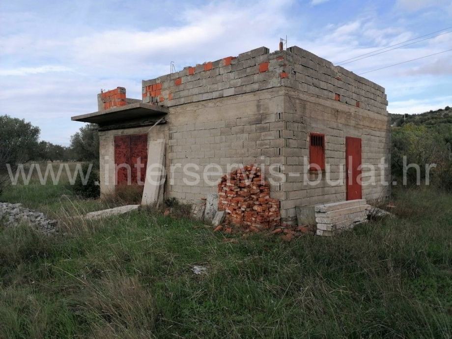 Na mirnoj lokaciji kod naselja Tare u Donjem Polju nalazi se kuća na prostranom poljoprivrednom zemljištu. Parcela je površine 5.264m2. Zemlja je obradiva i na njoj se nalazi i pokoje stablo masline. Na parceli se nalazi i legalizirana kuća dimenzija oko 9m x 8,80m. Izgrađena je betonskim blokovima i bez fasade, te natkrivena betonskom pločom. Kuća ne posjeduje priključke za struju i vodu.