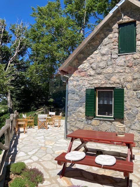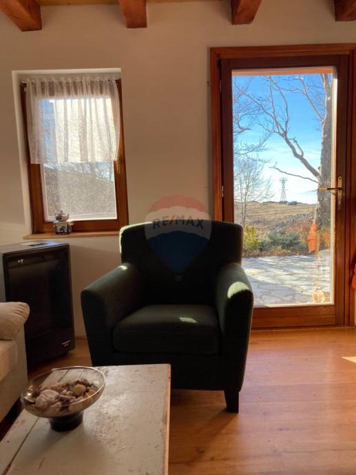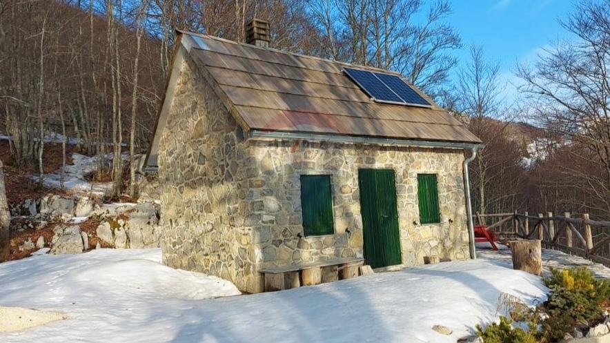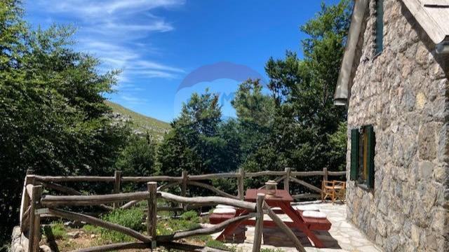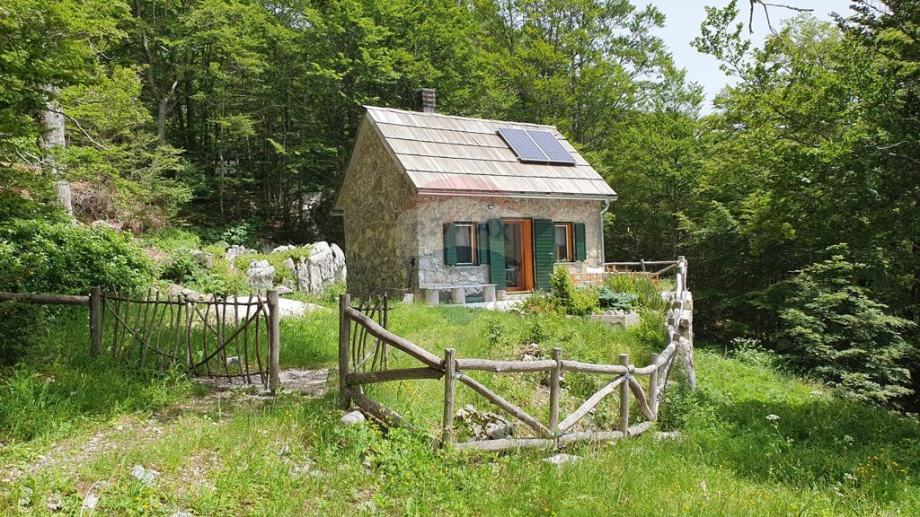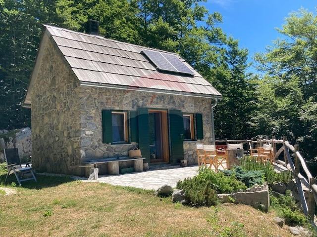 Dobili smo na prodaju zanimljivu kuću u divljini Velebita s predivnim pogledom na more. Nalazi se na prijevoju Veliki Alan, na nadmorskoj visini od 1340 metara, u Nacionalnom parku Sjeverni Velebit. Ista se nalazi u izoliranom području, daleko od naseljenih mjesta, što znači da nova gradnja ili obnova nisu dozvoljeni, što osigurava mir i u budućnosti. Kuća je okružena šumom, a s južne strane pruža se pogled na velebitske pašnjake Dujkovača i Buljma, dok s jugozapada možete uživati u pogledu na more i otoke Cres i Lošinj. Kuća je građena od šuplje cigle debljine 20 cm, s oblogom od stiropora debljine 5 cm, a izvana je obložena kamenom debljine 15-20 cm. Krov je napravljen od drvenih šindri.
