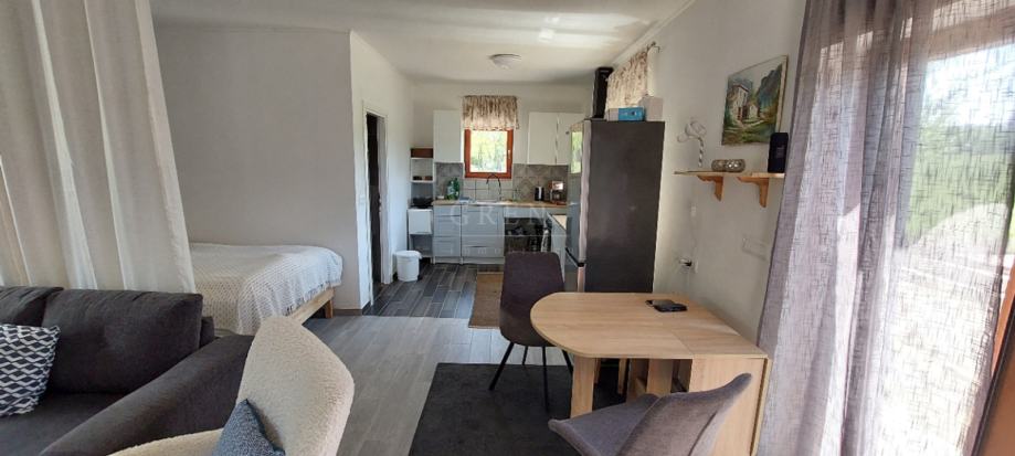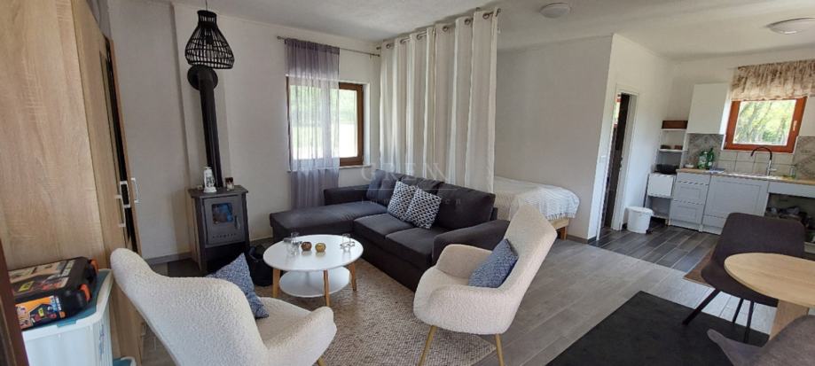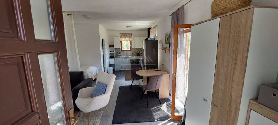 Prodaje se nedaleko Poreča i mora ova mala kućica sa velikim zemljištem . Kućica ima struju , vodu i septičku jamu, i kompletno je namještena. Zemljište je tretirano t.j izvršeno dubinsko oranje i sva priprema za sadnju. Kučica se sastoji od kuhinje s blagovaonicom i dnevnim boravkom u otvorenom prostoru, te kupaonice.Opremljena je klima uređajem za hlađenje i grijanje, i tijekom hladnijih mjeseci ima grijanje - peć na drva. Ova kuća nudi potpuni mir i privatnost, te predstavlja idealnu priliku za ljubitelje prirode, vikendicu, turističku investiciju ili život u skladu s prirodom.