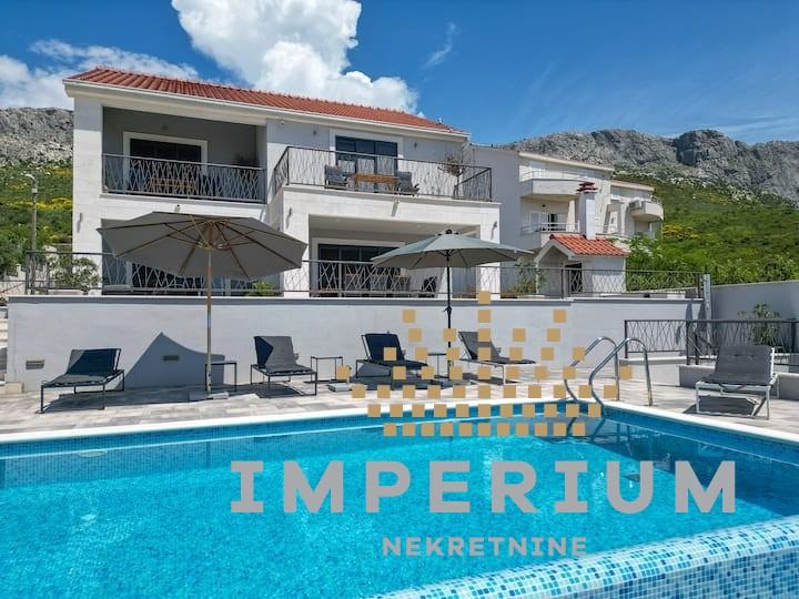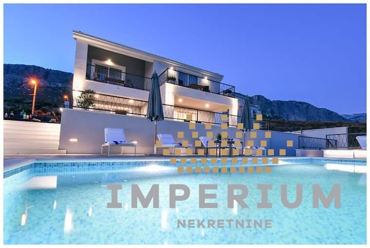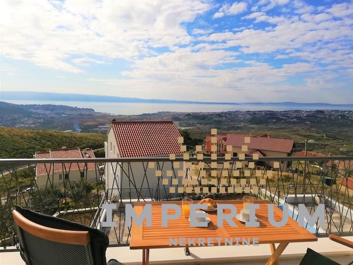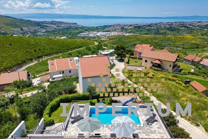 Kuća za najam u Kučinama, Solin – 300 m², grijani bazen, garaža, pogled na more