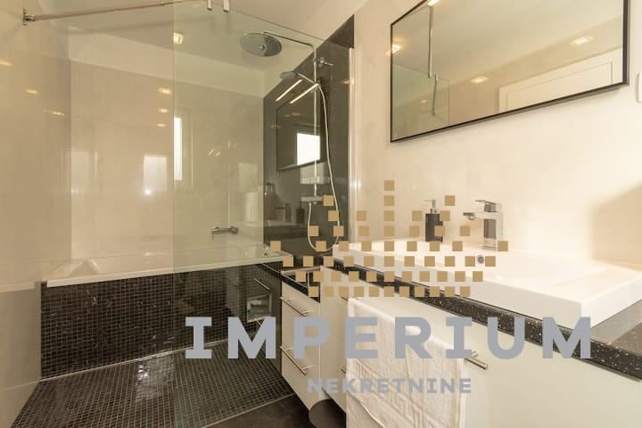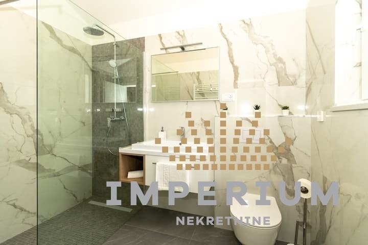 Druga etaža (prizemlje): Otvoreni koncept kuhinje, blagovaonice i prostranog dnevnog boravka s izlazom na terasu i dvorište. Također, na ovoj etaži nalazi se i gostinjski WC te jedna spavaća soba s vlastitom kupaonicom.