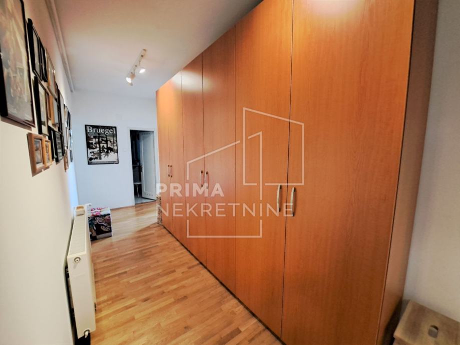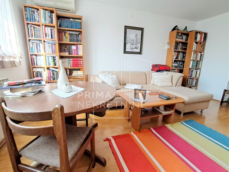 Dobar raspored prostorija, prostrane sobe te pregršt svjetla koje dopire s velikih prozorskih otvora, ono je što karakterizira ovu nekretninu. Stan se sastoji od dvije spavaće sobe, dnevne sobe, kuhinje s blagovaonicom i smočnicom te kupaonice i toaleta.
