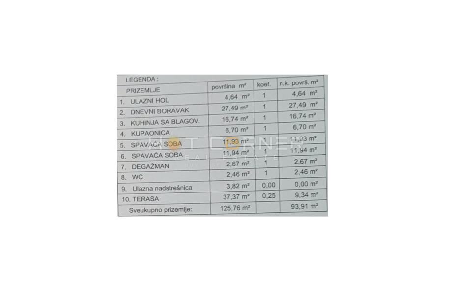 U nastavku fotografija je tlocrt nekretnine i iskaz površina.