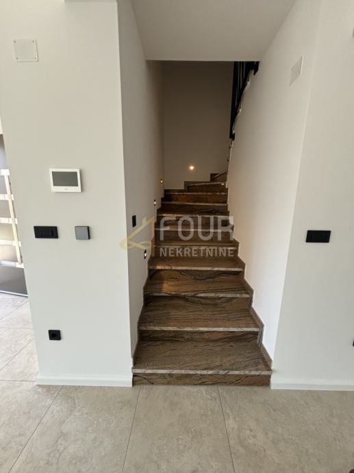 Opremljena je fasadom od 10 cm stiropora, a unutar kuće nalazi se parket u spavaćim sobama te keramičke pločice u ostalim prostorijama. Sanitarije su marki Laufen i Geberit. Za dodatnu udobnost, svaka soba opremljena je klima uređajem, dok je podno grijanje osigurano putem dizalice topline Daikin. Isto tako, tu je i troslojna PVC stolarija, a sigurnost osiguravaju video nadzor i protuprovalna vrata. Uz kuću se nalaze i dva parkirna mjesta.