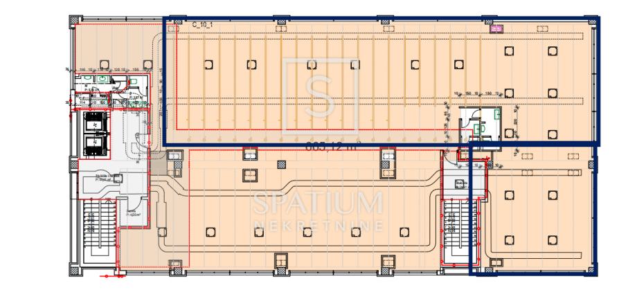 Ukupna površina ureda je 400m2. Postoji mogućnost pregrade većeg ureda pošto prostorija ima dva odvojena ulaza. Velike staklene površine garantiraju ugodnu radnu okolinu te osiguravaju dovoljnu količinu dnevnog svjetla.