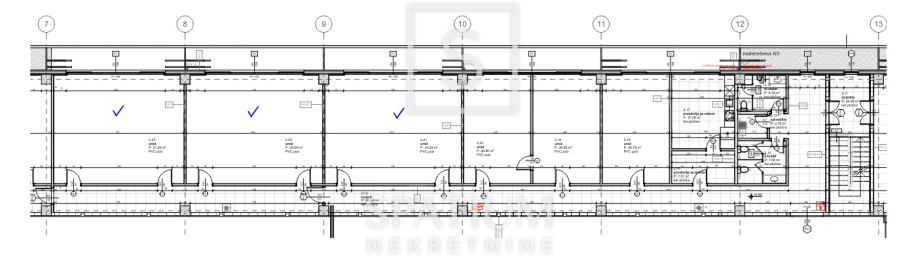 Veći uredi su površine 54,59 m2 ili 51,90m2 dok su 26,80 m2 manji. Postoji mogućnost pregrade većeg ureda pošto prostorija ima dva odvojena ulaza kao i dvije klima jedinice. Velike staklene površine garantiraju ugodnu radnu okolinu te osiguravaju dovoljnu količinu dnevnog svjetla.