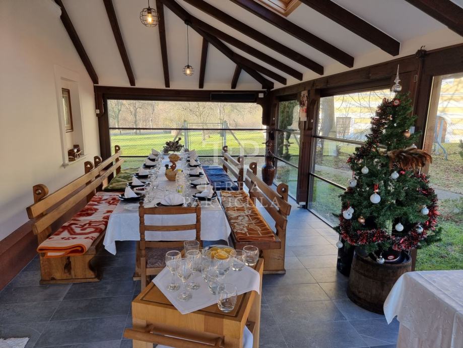 Prodajemo potpuno obnovljenu (2007) kuriju u Kumrovcu. Izgrađena je 1780. površine cca 240 m2 (bruto 315 m2) raspoređenih na tri etaže. Kurija je pripadala Sidoniji Erdödy koja je neko vrijeme živjela u njoj. Udaljena je 12 km od Tuheljskih Toplica, 14 km od Termi Olimja te 25 km od Čateških Toplica. Posjed je ograđen u cijelosti. Veći dio parcele je u građevinskoj zoni. Svi priključci, 1/1. Površina imanja je 12.489 m2. Ispred kurije je nadstrešnica/zimski vrt površine cca 35 m2 . Centralno grijanje na plin i namještaj je nov. Useljiva je odmah,