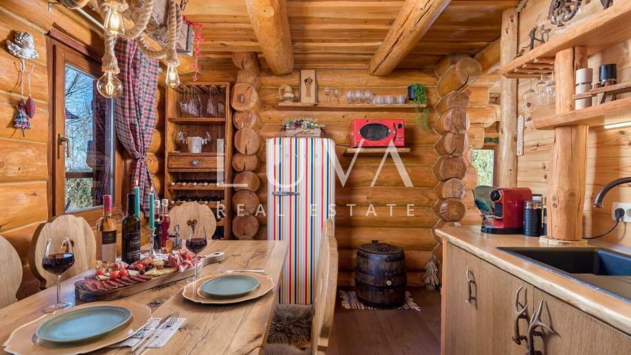 Prodaje se moderna drvena kuća za odmor u mjestu Kupjak u Gorskom Kotaru. Kuća je površine 170 m2, a sastoji se od 2 spavaće sobe, 2 kupaonice, dnevnog boravka, blagovaonice i dodatne prostorije s modernim kaminom. Interijer kuće je uređen u rustikalnom stilu s namještajem izrađenim od drva.