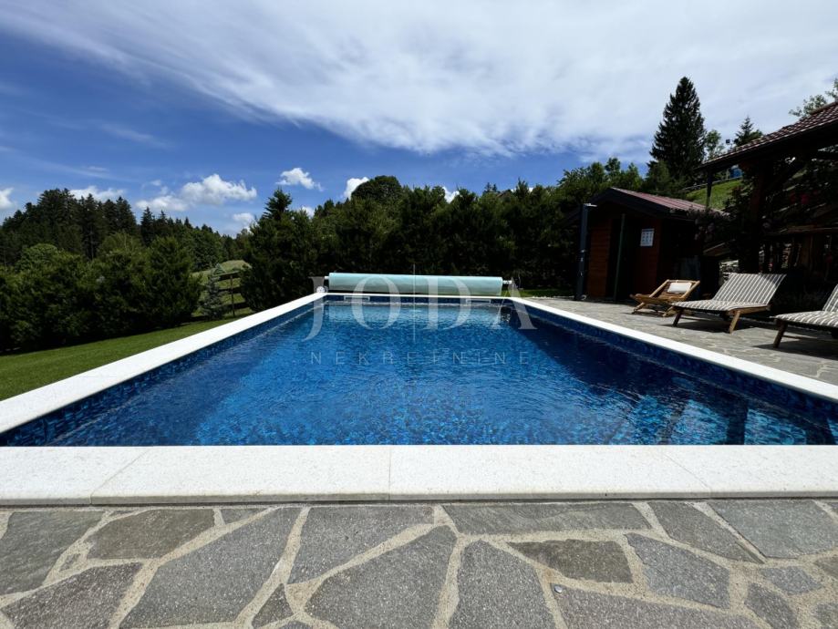 Ispred se nalazi bazen sa sunčalištem.
