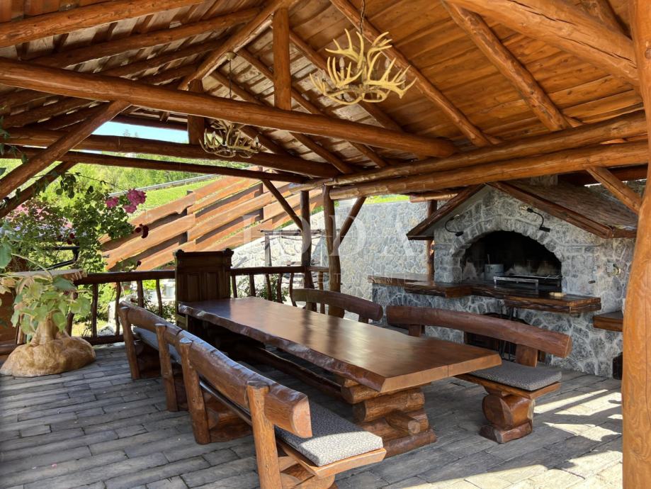 Glavni objekt je drvena kuća kompletno namještena i uređena sa puno ukusa i ljubavi.Uz kuću je veliki natkriveni prostor za druženje sa grillom također izgrađen u autohtonom stilu.