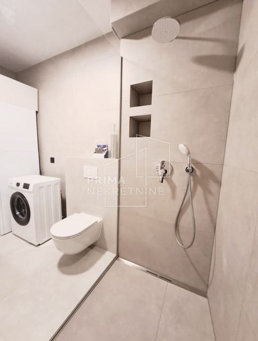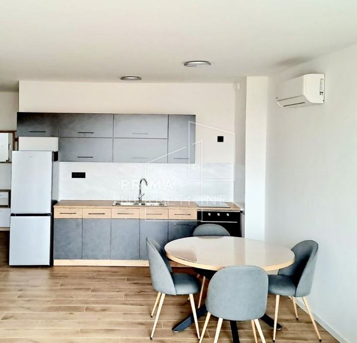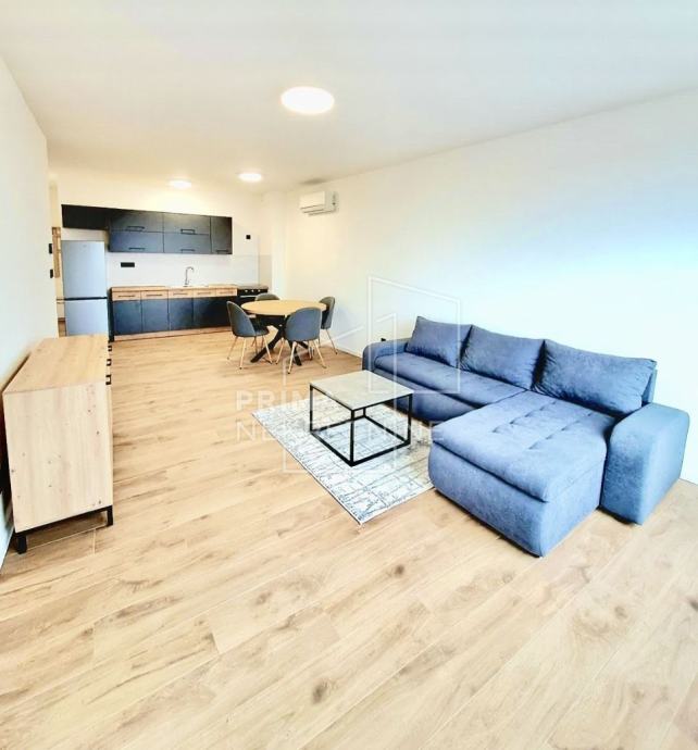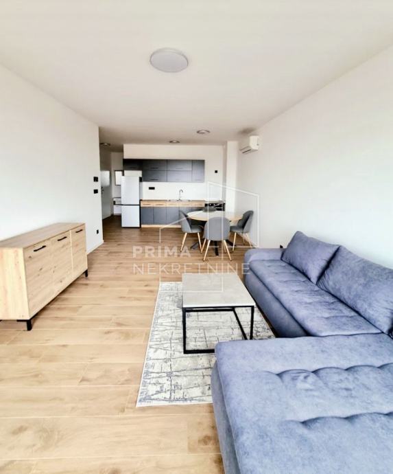 Stan je namješten s potpuno novim namještajem, a sastoji se od prostranog dnevnog boravka, kuhinje i blagovaonice otvorenog koncepta, sobe, kupaonice, predsoblja i terase.