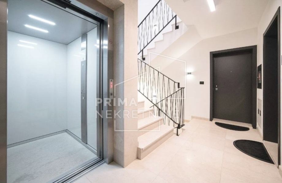 Stan je opremljen aluminijskom stolarijom, električnim podizačima za rolete, komarnicima na svim prozorima i vratima, podnim grijanjem na dizalicu topline, klima uređajem, podnim hladjenjem, video nadzorom, portafonom.