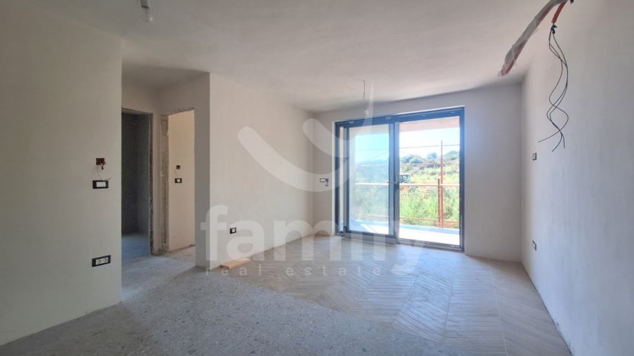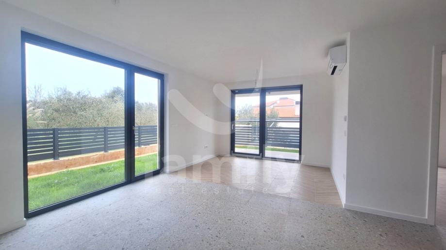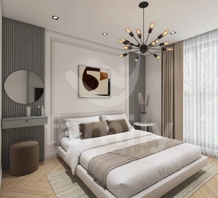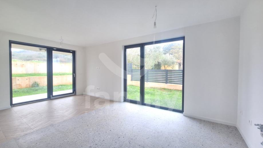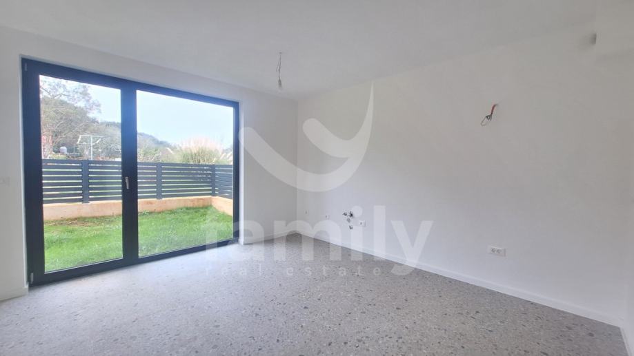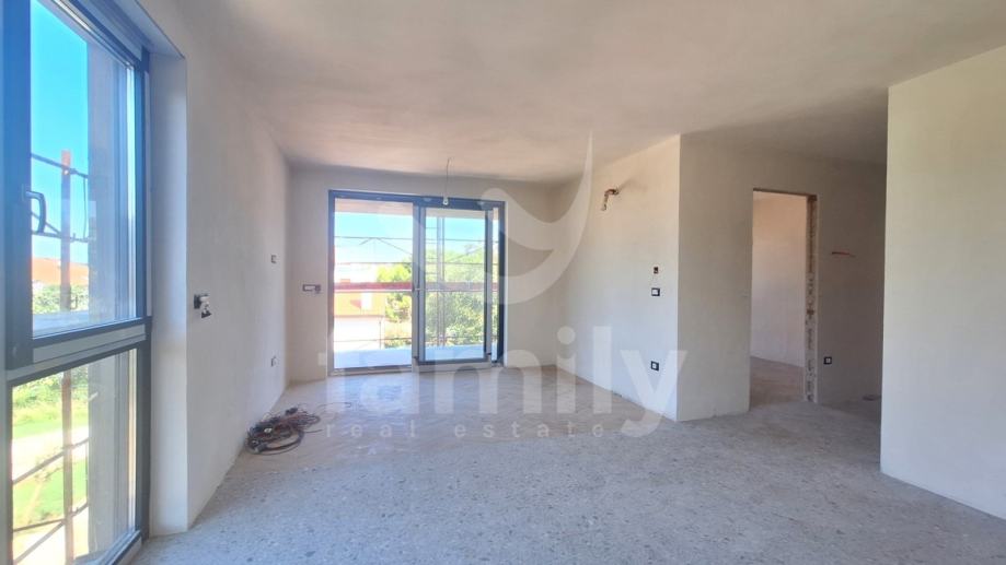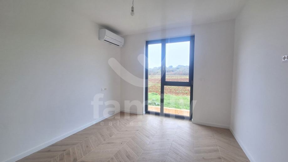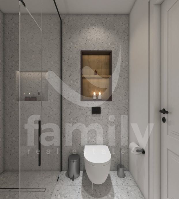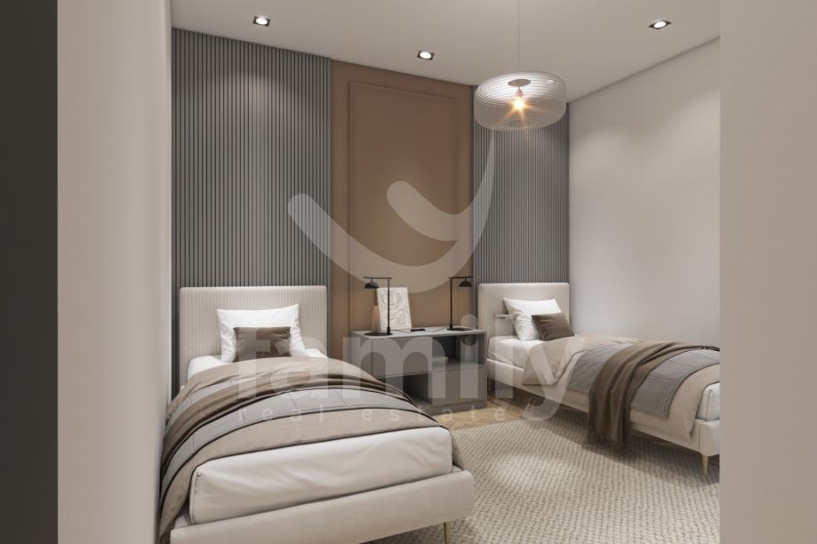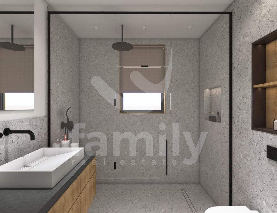 Upravo u Banjolama na veoma mirnoj lokaciji se nalazi navedena moderna i kvalitetna novogradnja manje stambene zgrade sa strane provjerenog investitora sa ukupno 8 stambenih jedinica. Navedeni stan površine 62,34 m2 se nalazi na prvom katu te se isti sastoji od ulaznog predprostora opremljen protuprovalnim ulaznim vratima, dvije osvijetljene i prostrane spavaće sobe, prostranog dnevnog boravka spojenog sa kuhinjom open space koncepta i izlazom na lođu površine 4,15 m2 kao i jednog kupatila opremljenog ugradbenim vodokotlićem marke Geberit, walk-in tušem, sprovedenim instalacijama za perilicu rublja, bojlerom marke Ariston kao i sustavom ventilacije. Podovi su u cijelom stanu obloženi visokokvalitetnom keramikom te je u spavaćoj sobi postavljena keramika imitacije drveta Sherborne. Sustav grijanja i hlađenja reguliran je putem dvije jedinice Mitsubishi klima uređaja, jedne jedinice postavljene u spavaćoj sobi i jedne u dnevnom boravku te je također sprovedeno podno grijanje na struju u cijelom objektu sa zasebnim Wi-Fi termostatima u svakoj prostoriji. Postavljena je PVC stolarija troslojnog stakla antracit boje i aluminijskim roletama na elektropodizače te će također biti postavljena ALU ograda vrta antracit boje. Zgrada je na katu opremljena termofasadom debljine 12 cm što svakako doprinosi izvrsnoj toplinskoj i zvučnoj izolaciji. Stanu pripada jedno otkriveno parkirno mjesto kao i jedan zajednički toalet koji se nalazi na hodniku zgrade te će isti biti u suvlasništvu svih sustanara te je planirani završetak radova kraj 2025. godine.