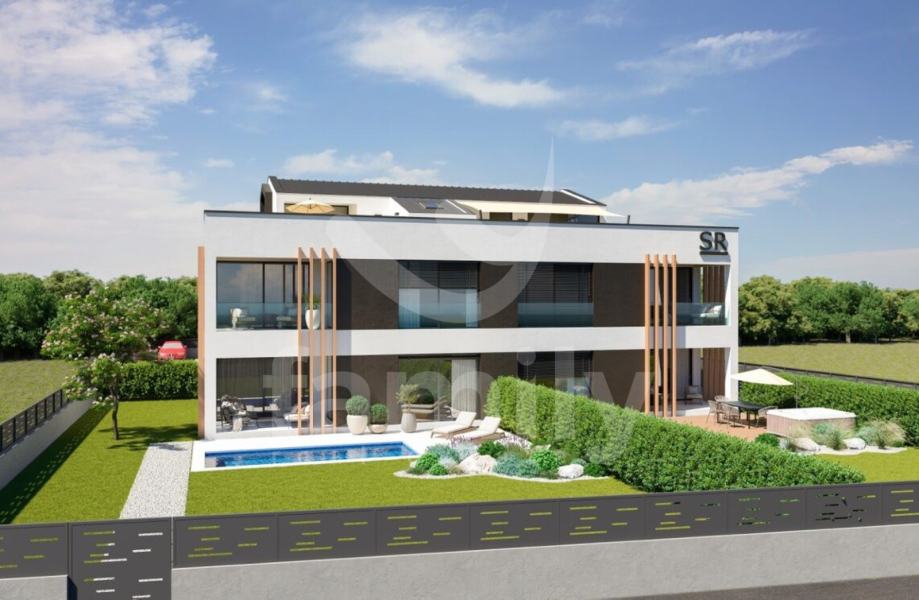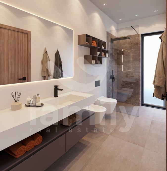 Upravo u Rovinju, u manjoj stambenoj zgradi u izgradnji sa sveukupno 6 stana, na odličnoj i mirnoj lokaciji nalazi se ovaj prostrani stan površine 143,3 m2 od kojih je 91,3 m2 stambene namjene, garaža i dva spremišta su površine 25,4 m2, dok je vrt sa zasebnim pješačkim ulazom površine 268 m2. Ova visoko energetski učinkovita zgrada biti će izgrađena do kraja 2026. godine za kada je planirano useljenje. Stan će se nalaziti u prizemlju i u okviru njega će se nalaziti dvije spavaće sobe, dvije kupaonice, ostava ili prostorija za pranje/sušenje rublja i grijani bazen površine 21 m2. Stanu pripadaju dva parkirna mjesta, jedno u garaži i jedno otkriveno kao i ostava u okviru zgrade, zgrada će posjedovati lift, a garažna vrata i glavna pristupna ograda će biti sa daljinskim upravljanjem. Pametno projektiranje i kvalitetna gradnja i opremanje omogućit će ispunjavanje najviših enertgetskih kriterija te će biti postavljene ALU troslojne staklene stijene renomiranih prozvođača Schüco/Wicona/Cortizo, zasjenjivanje s elektromotornim upravljanjem te ugrađenim anemometrom za zaštitu od vremenskih nepogoda poput jakog vjetra. Sigurnost cijelog objekta će biti na zavidnom nivou te je planiran video parlafon sa video nadzorom, ulazna protuprovalna i protupožarna vrata stana te protuprovalni i protupožarni alarmni sustav s detekcijom dima. Ova zaista visokokvalitetna i luksuzna nekretnina bit će opremljena kupaonskim namještajem više klase renomiranog talijanskog brenda Idea Group, LED ugradbeni reflektori 230 V za savršeno osnovno osvjetljenje svih prostorija, a podovi će biti obloženi keramikom renomiranih talijanskih proizvođača ili parketom prve klase! Sustav grijanja će biti putem dizalica topline i podnog grijanja sa zasebnim autonomnim inverterskim sustavom klimatizacije za hlađenje i grijanje s mogućnošću wi-fi daljinskog upravljanja. Tijekom projektiranja mislilo se na sve te će biti ugrađeni sustavi za omekšavanje i filtriranje vode, a postojat će i opcija opremanja stana kuhinjama DanKüchen, Record Cucine i The Cut, uz povlaštene cijene. Lokacija je izvrsna, mirna, a opet nedaleko od popratnog sadržaja i centra Rovinja te je blizu plaže na svega 280 metara. Planirani završetak radova je kraj 2026. godine. Nekretnina je u vlasništvu tvrte te se na cijenu plaća PDV.