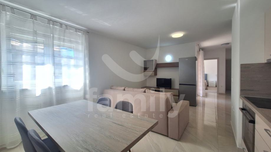Upravo u Peroju, na veoma mirnoj lokaciji se nalazi navedeni visokokvalitetni stan na prvom katu zgrade površine 60 m2 od sveukupno 10 stambenih jedinica. Stan se sastoji od ulaznog predprostora opremljen cipelarnikom, osvijetljenog dnevnog boravka spojenog sa kuhinjom opremljenom Gorenje induktivnom pločom za kuhanje, perilicom posuđa, pećnice kao i samofiltrirajućom napom, prostorom za ručavanje, dvije komforne spavaće sobe, kupatila opremljenim walk-in tušem, bojlerom i sprovedenim instalacijama za pericilu rublja kao i lođe. Grijanje i hlađenje je regulirano putem jedinice klima uređaja, postavljeno je podno grijanje na struju te je cijeli objekt opremljen PVC stolarijom sa duplim staklima, 7 plinskih komora i termofasadom debljine 10 cm što osigurava odličnu zvučnu i toplotnu izolaciju. Podovi su u cijelom stanu obloženi visokokvalitetnom keramikom. Stan se prodaje sa jednim parkirnim mjestom.