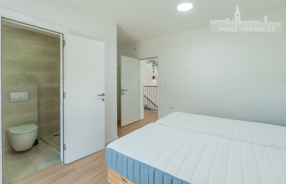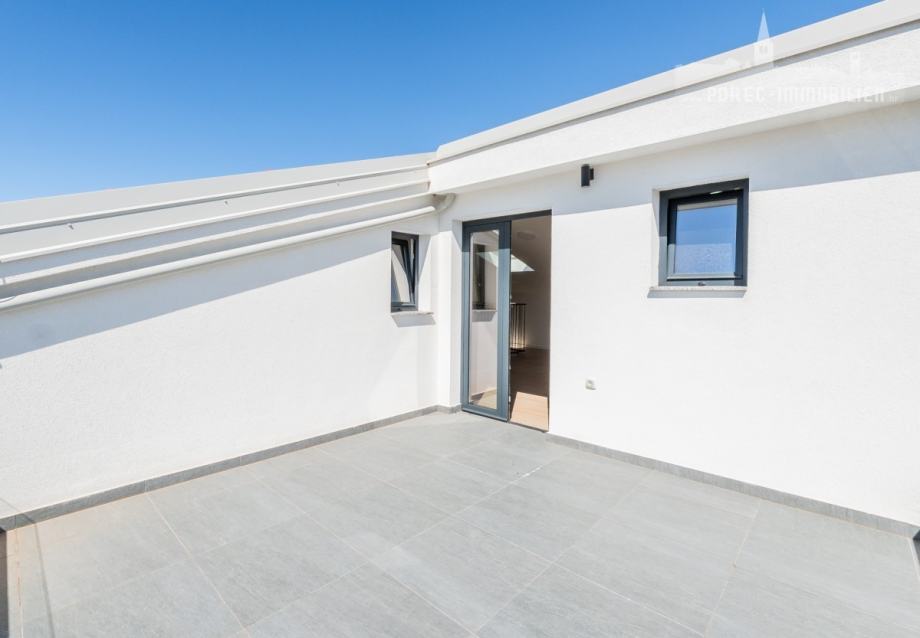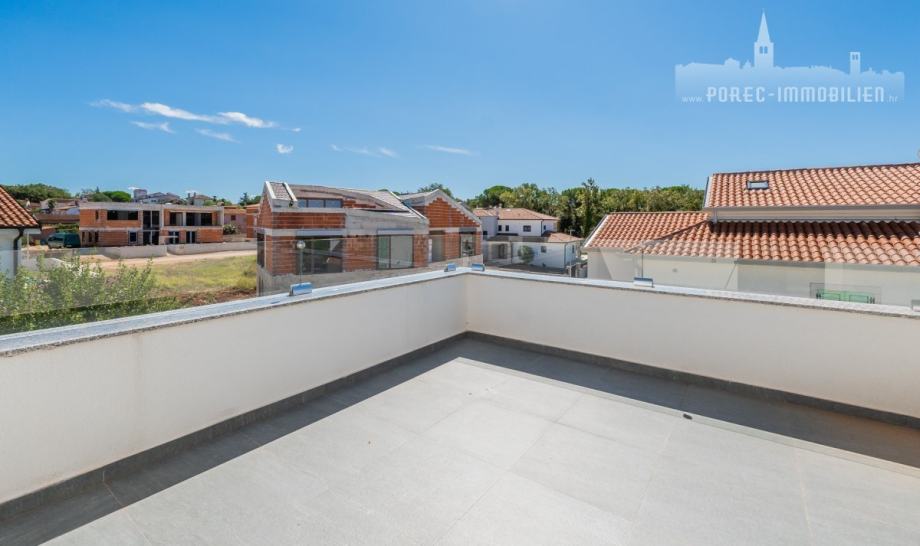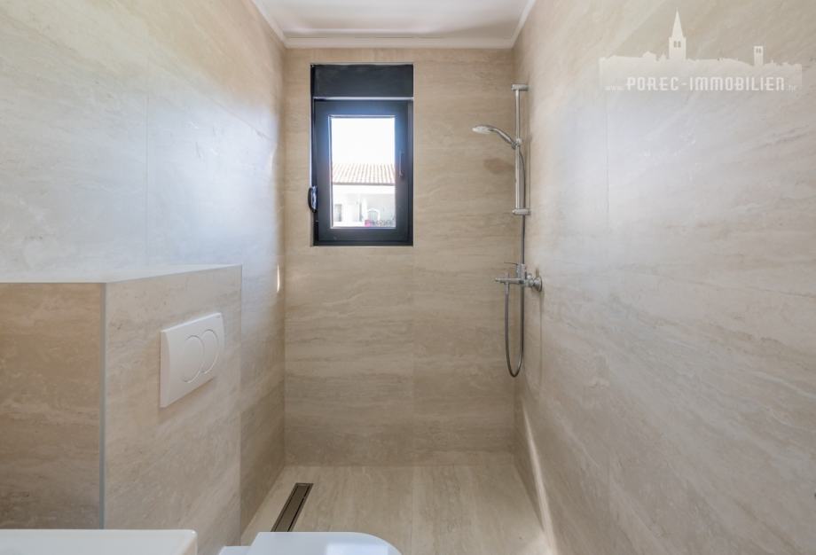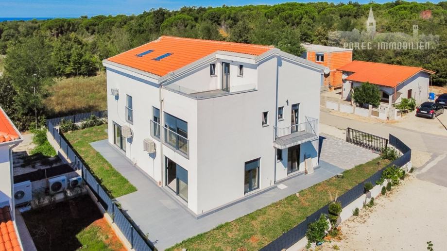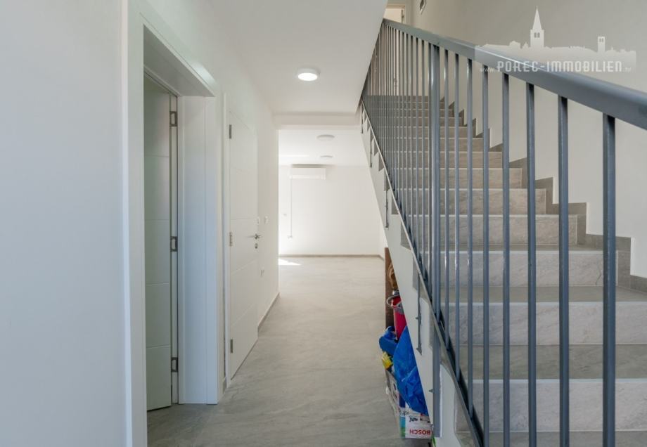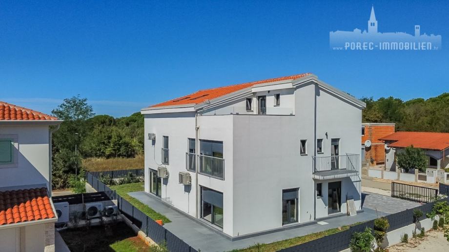 U neposrednoj blizini centra grada Poreča, na prodaji je nova tek dovršena dvojna kuća, koja se sastoji od 3 etaže.