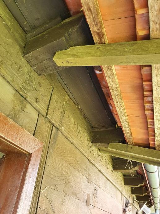 Grede dimenzija 30 x 30 cm, podrožnice, rogovi, te stropovi prostorija, sve izrađeno od hrastovog drva.