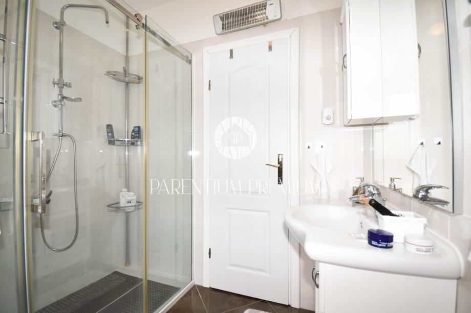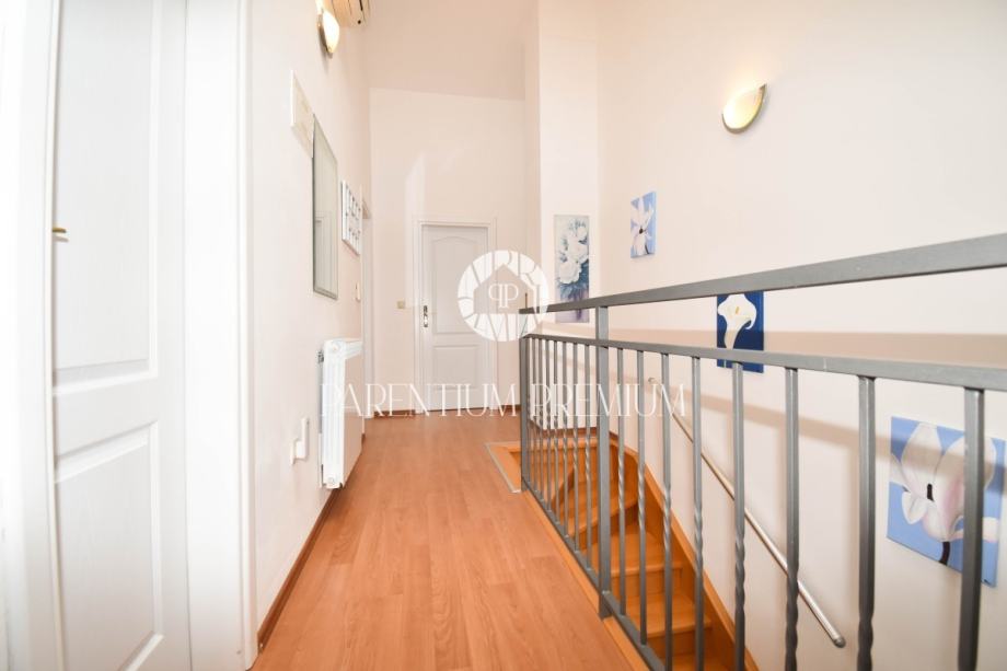 Elegantnim drvenim stepenicama penjemo se na kat gdje su smještene 3 spavaće sobe od kojih 2 imaju vlastite terase uz zajedničku kupaonicu.