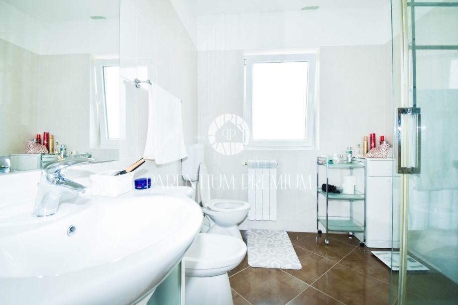 U prizemlju se nalazi pred prostor koji Vas uvodi u otvoreni dnevni dio sa kuhinjom i blagovaonom uz puno svjetlosti. Iz tog dijela se izlazi na terasu koja je djelomično natkrivena i zeleni dio vrta idealan za postavljanje ljetne kuhinje za ugodna druženja. Na ovoj etaži se još nalazi kupaonica, tehnička soba i praktična ostava za kuhinjske potrepštine.