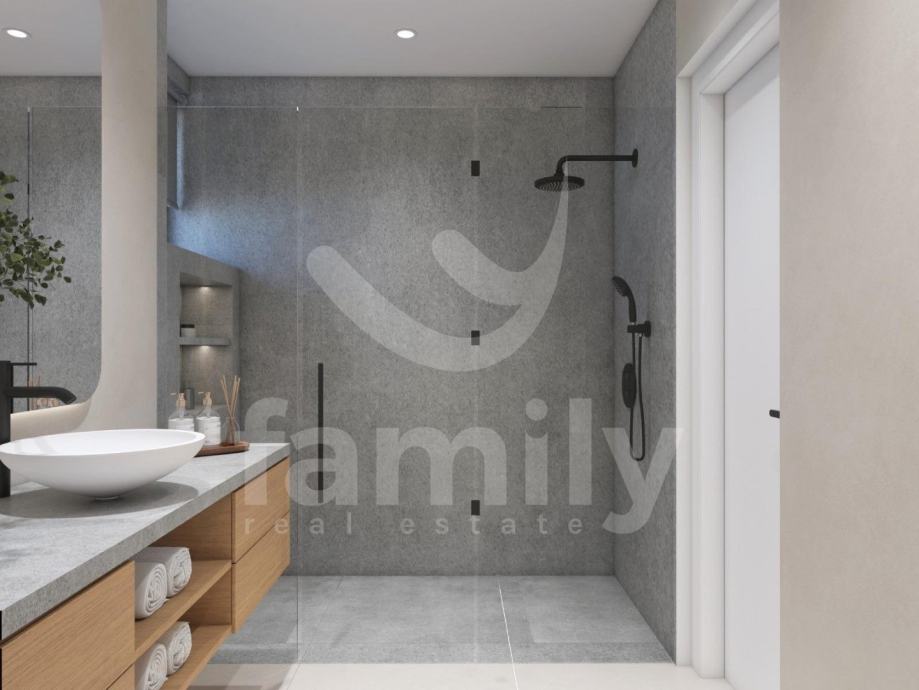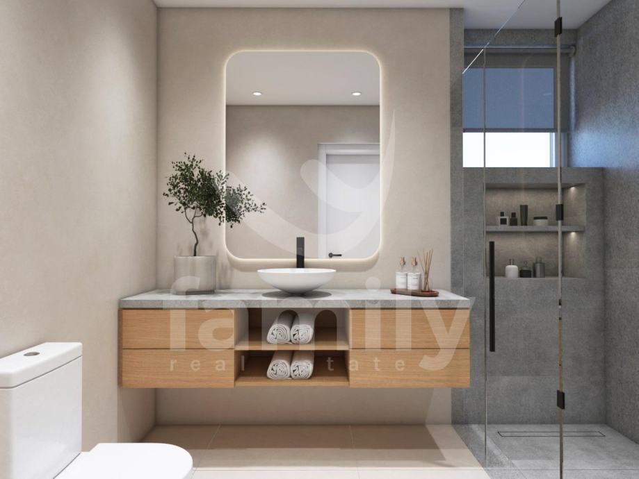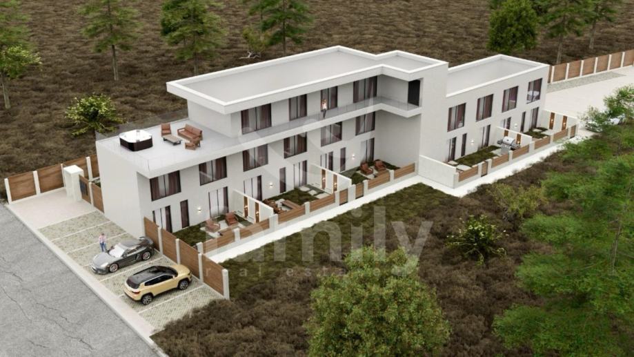 Upravo u jednom od najatraktivnijih naselja u sklopu Općine Medulin, u Premanturi planirana je izgradnja ove izuzetno moderne i kvalitetne kuće u nizu sa strane provjerenog investitora sa sveukupno 6 stambenih jedinica. Navedena nekretnina će se nalaziti u prizemlju zgrade sa sveukupnom stambenom površinom od 80 m2 te će se ista prostirati na dvije etaže. Prizemlje navedene nekretnine će se sastojati od osvijetljenog dnevnog boravka sa izlazom u vrt kojemu je predviđena površina otprilike 30 m2, visokokvalitetne kuhinje sa prostorom za ručavanje, jednim gostinjskim wc-om kao i ostavom smještenom ispod stepeništa. Unutarnjim stepeništem će se pristupati drugoj etaži koja će se sastojati od dvije komforne spavaće sobe i dva kupatila. Sustav grijanja i hlađenja planirano je regulirati putem 3 jedinice klima uređaja, po jedna u spavaćim sobama i jedna jedinica je planirana u dnevnom boravku. Također će biti postavljeno podno grijanje na struju u kuhinji, dnevnom boravku kao i kupatilu. Stan će biti opremljen troslojnom PVC stolarijom antracit boje, podizno kliznim vratima, električnim aluminijskim roletama kao i aluminijskim ulaznim vratima. Podovi će biti obloženi visokokvalitetnim parketom i keramikom s mogućnošću odabira po vlastitim preferencijama. Stanu će također pripadati 2 parkirna mjesta.