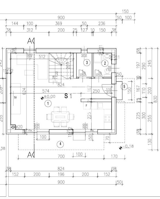 Ova moderna kuća sastoji se od prizemlja na kojem se nalazi open space dnevni boravak s kuhinjom i blagovaonicom, ostava i kupaonica.