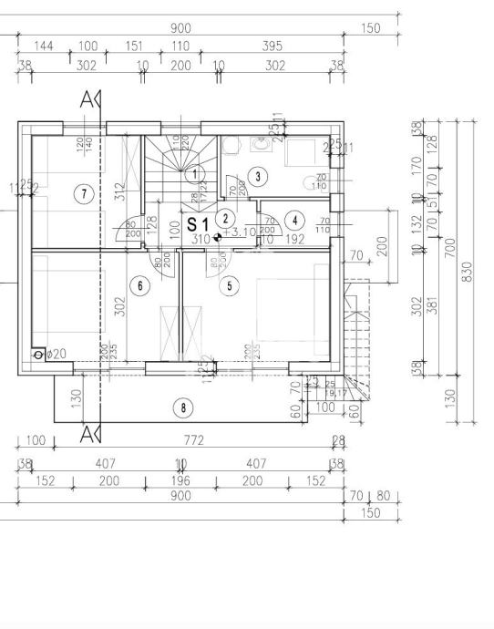 Na prvom se katu nalaze tri spavaće sobe od koji dvije imaju izlaz na terasu s pogledom na more. Na katu se nalazi i praonica te jedna kupaonica.