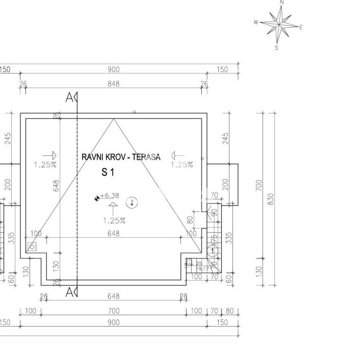Vanjskim se stepenicama ide na krovnu terasu od 60m2 na kojem su postavljene instalacije za ljetnu kuhinju i jacuzzi.