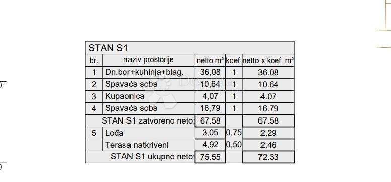 - Ukupna površina: 72.33 m2