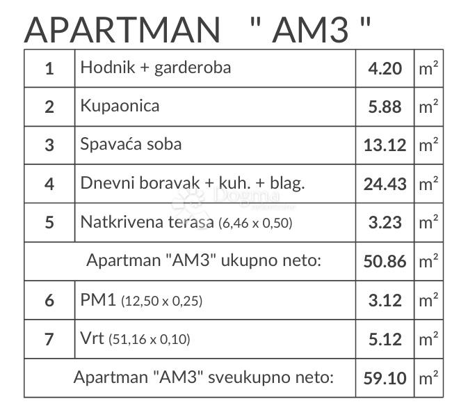 Stanovi su različitih površina i kvadratura te tako imamo nekoliko stanova s jednom spavaćom sobom (1S+DB) te nekoliko stanova s dvije spavaće sobe (2S+DB). Svakom stanu pripada po jedno parkirno mjesto smješteno ispred same zgrade.
