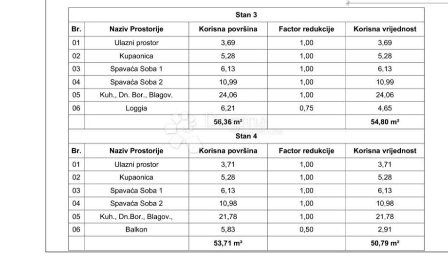 Stan će se nalaziti na 2. katu stambene zgrade, ukupne površine 54.80 m². Sastoji se od hodnika, 2 spavaće sobe, kupaonice, kuhinje s blagovaonicom i dnevnim boravkom te terasom. Stan će biti opremljen keramičkim pločicama i sanitarijama u kupaonici.