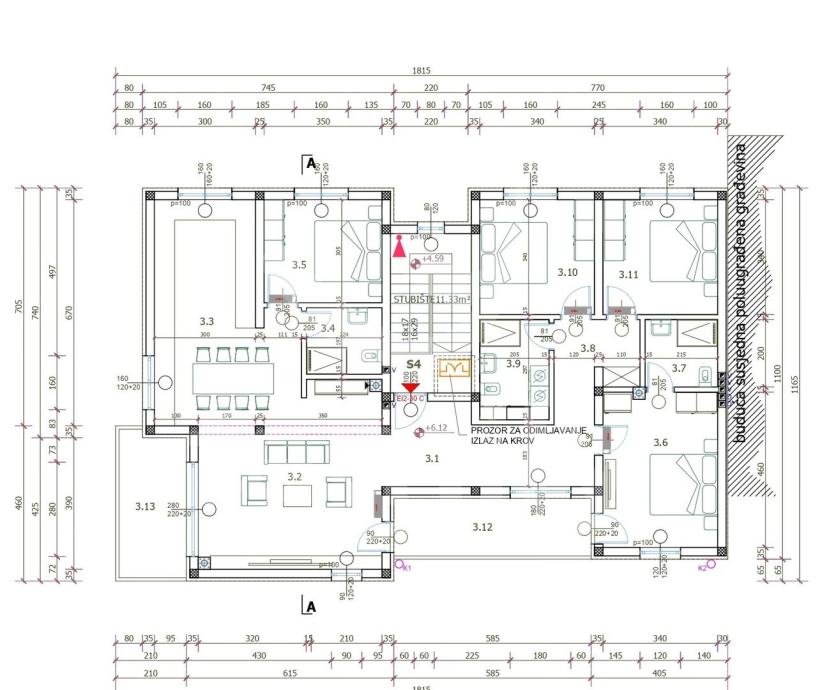 Upravo u Štinjanu, nedaleko od poznate plaže Hidrobaza planirana je izgradnja manje stambene zgrade sa ukupno četiri stana. Na drugome katu ove kvalitetne zgrade u izgradnji nalazit će se ovaj prostrani, luksuzni penthouse površine 153,12 m2. U okviru stana planirani su ulazni predprostor, četiri spavaće sobe, tri kupaonice, dnevni boravak, kuhinja sa blagovaonom, prostrana lođa površine 9,95 m2 i natkrivena terasa površine 8,48 m2. Stanu pripadaju tri parkirna mjesta (dva garažna i jedno otkriveno) i ostava, dok je za opremanjem stana planirano postavljanje PVC stolarije visokokvalitetne i troslojne boje antracita - tamno sive kao i komarnici i rolete sa električnim podizačima. Sustav grijanja i hlađenje bit će reguliran putem jedinica klima uređaja i bit će postavljeno električno podno grijanje. Lokacija ove stambene zgrade je idealna u smislu blizine popratnih sadržaja neophodnih za svakodnevni život poput trgovina, škole, vrtića, ljekarne, centra Pule, a ujedno je vrlo blizu poznate štinjanske plaže Hidrobaza u razmjeri pješačke udaljenosti. Nekretnina je u vlasništvu tvrtke.