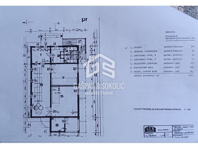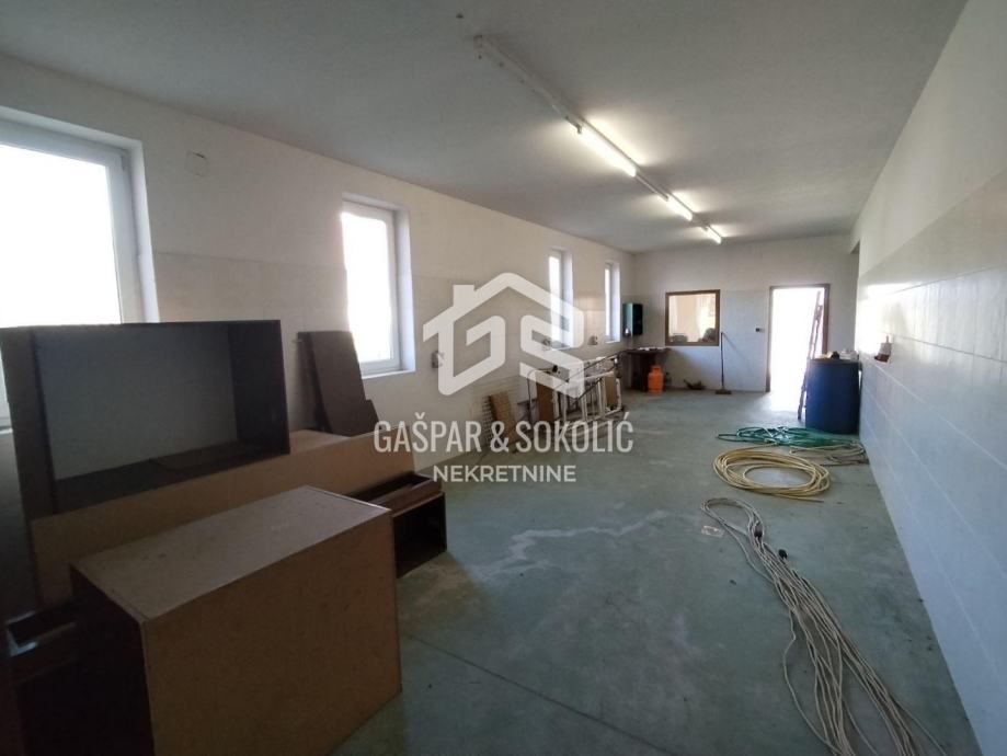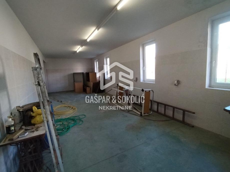 U prizemlju je smješten poslovni prostor ( hala ), ukupne površine 142,65 m2, koja se sastoji od 3 skladišne prostorije, dvije sobe za djelatnike i 2 sanitarna čvora. Dvije skladišne prostorije imaju veća metalna sekcijska vrata, industrijski pod, u većem prostoru pločice na zidu.