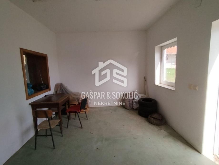 Uz kuću je veliko asfaltirano parkiralište, velika klizna vrata, te mala ulazna. Okućnica cca 3080 m2, voćnjak s otprilike 30–ak stabala.