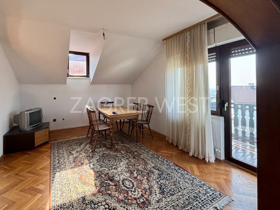 Mansarda nudi sličan raspored – dnevni boravak, blagovaonicu, kuhinju, tri spavaće sobe i dva balkona, što omogućuje komforan smještaj veće obitelji ili potencijal za dvije odvojene stambene jedinice.