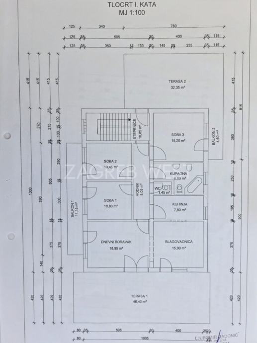 Samostojeća kuća građena krajem 80-ih godina, kombinacijom opeke i armiranobetonske konstrukcije, raspoređena na tri etaže: prizemlje, kat i mansarda. Netto površina objekta je 371,11m2, a površina parcele 914m2. Posjeduje svu dokumentaciju: vlasnički list s vlasništvom 1/1, bez ikakvih tereta; upisi u katastar i zemljišnu knjigu su usklađeni; 2018. je ishođeno rješenje o izvedenom stanju koje je upisano u vlasničkome listu. Energetski razred je C.