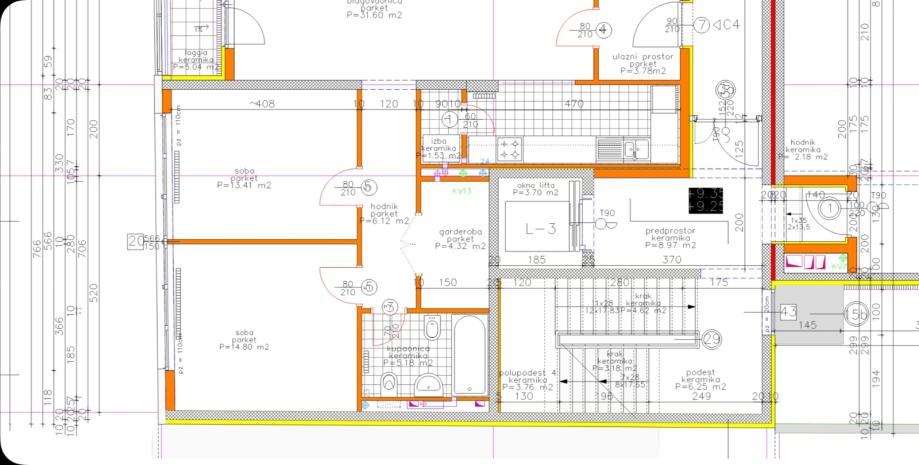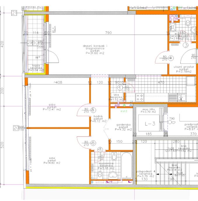 Kvadratura zatvorene površine iznosi 90 m2, s loggiom i spremištem ukupno NKP 100m2.