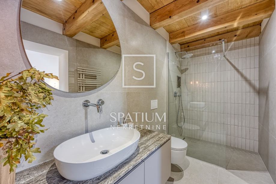 U nastavku gostinjskog dijela nalazi se i luksuzna SPA zona, zatvorena velikim staklenim stijenkama, opremljena saunom, kadom i prostorom za tuširanje.