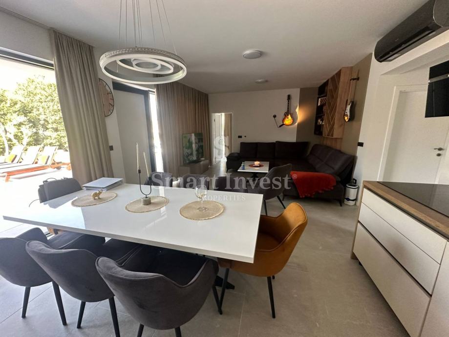 Kuća je moderno uređena i kompletno opremljena i prodaje je sa svim namještajem i aparatima. Pogodna je i za invalidne osobe radi jednostavnog pristupa.