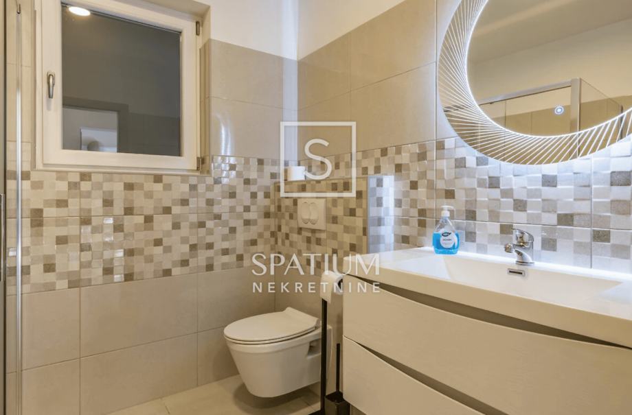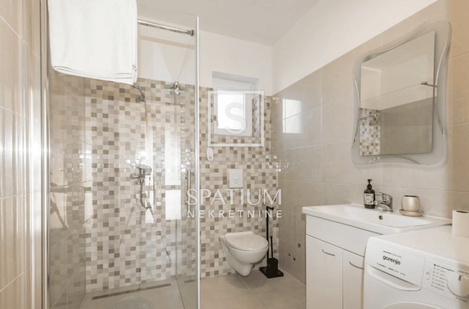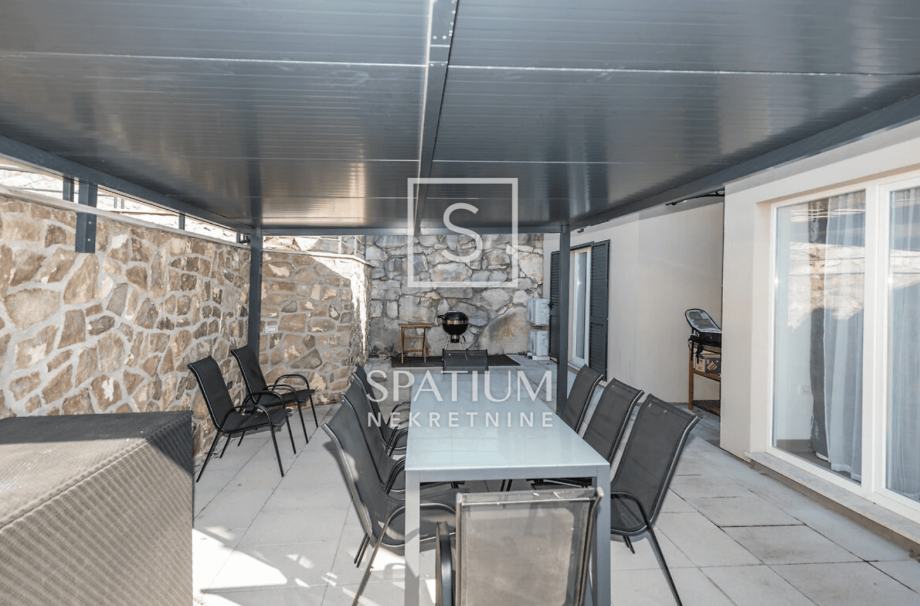 LABIN, u ponudu smo dobili atraktivnu kuću ukupne stambene površine 164 m². Kuća je smještena na velikoj parceli od 1391 m², s dva odvojena stana na dvije etaže, svaki sa zasebnim ulazom. Svaki stan nudi po dvije prostrane spavaće sobe, dvije moderno uređene kupaonice te otvoreni koncept dnevnog boravka s kuhinjom i blagovaonicom. Kuća je klimatizirana – svaki prostor ima vlastiti klima uređaj, a dodatna prednost je dimnjak koji omogućuje grijanje na kruta goriva, čineći je pogodnom za cjelogodišnje stanovanje. Na uređenoj okućnici nalazi se keramikom obložen bazen površine 47 m², a postoji mogućnost izgradnje dodatnog bazena, što znatno povećava turistički potencijal. Kuća se već uspješno koristi za turistički najam, što je čini odličnom investicijskom prilikom.