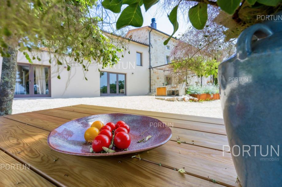 Na mirnoj lokaciji u istočnoj Istri, nedaleko od Labina, prodaje se otmjena kamena vila s bazenom i moderno opremljenim wellnessom. Potpuno obnovljena 2023. godine, ova vila kombinira autentičan istarski stil i vrhunski komfor. Kuća je okružena zelenilom i nudi pogled na brežuljke doline rijeke Raše.Ova otmjena kamena vila izgrađena je oko 1900. godine, a temeljito je obnovljena 2023. godine s pažnjom prema detaljima i očuvanju tradicije. Vanjski zidovi debljine 60 cm obloženi su prirodnim kamenom i izolacijom od kamene vune, dok je krov izveden kao kosi sustav s kanalicom i dodatnom termoizolacijom. Betonska međukatna konstrukcija jamči stabilnost i dugotrajnost objekta.Glavna kuća prostire se na prizemlje, kat i potkrovlje te uključuje tri spavaće sobe i tri kupaonice, stvarajući prostran i funkcionalan životni prostor. U drugom dijelu kuće smješten je udoban apartman s vlastitom spavaćom sobom, idealan za goste ili članove obitelji. Na samom kraju niza ovih objekata nalazi se zaseban, prizemni prostor u kojemu je moderno opremljeni wellness s saunom i dodatnim sadržajima za opuštanje.Zemljište se u potpunosti nalazi unutar građevinske zone, što nudi dodatne mogućnosti za proširenje. Vrt je uredno održavan i sadrži travnjak, šumarak, autohtone biljke, vinovu lozu i začinsko bilje. Tu su i automatski sustav navodnjavanja te dekorativna vanjska rasvjeta. Vila je kompletno namještena i opremljena videonadzorom i modernim sanitarijama marke Villeroy - Boch.Sustav grijanja i hlađenja uključuje ventilokonvektore na dizalicu topline, kamine na drva te podno grijanje u prizemlju. Ugrađena je i dizalica topline Atlantic s velikim bojlerom od 500L. Drvena stolarija s dvostrukim ostakljenjem, protuprovalna ulazna vrata i vrhunske podne obloge (keramika, parket, mikrocement) doprinose osjećaju luksuza.U dvorištu se nalazi skimerski bazen površine 36 m2 s oblogom od Pebble tec materijala i klor sustavom za dezinfekciju. Uz bazen je uređeno sunčalište s ležaljkama, savršeno za ljetni odmor. Kuća je orijentirana na zapad te ima nesmetan pogled na brežuljke koji okružuju dolinu rijeke Raše, što doprinosi mirnoj atmosferi.Lokacija kuće osigurava privatnost i tišinu, dok se svi sadržaji nalaze na dohvat ruke. Labin je udaljen svega 8 km, plaže oko 12 km, a osnovne usluge (trgovina, škola, zdravstvo) dostupne su unutar 5–8 km. Položaj kuće omogućuje uživanje u prirodi, a istovremeno blizinu urbanih sadržaja, što je čini idealnim izborom za život ili luksuzan odmor.Ova nekretnina predstavlja rijetku priliku na tržištu — kombinaciju autentičnosti, komfora i prirodnog okruženja. Ako tražite nekretninu s karakterom i potencijalom za uživanje ili investiciju, ova vila zadovoljit će najviše kriterije.Za više informacija ili termin razgleda, slobodno nam se javite – rado ćemo odgovoriti na sva pitanja.KLJUČNE OSOBINE✔ Glavna kuća sa 3 spavaće sobe i 3 kupaonice✔ Apartaman sa 1 spavaćom sobom✔ Moderan wellnes sa saunom✔ Bazen - 36,00 m2✔ Kategorizacija: 4 Zvjezdice. ✔ Plaža 12 km