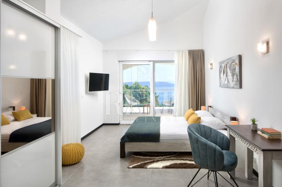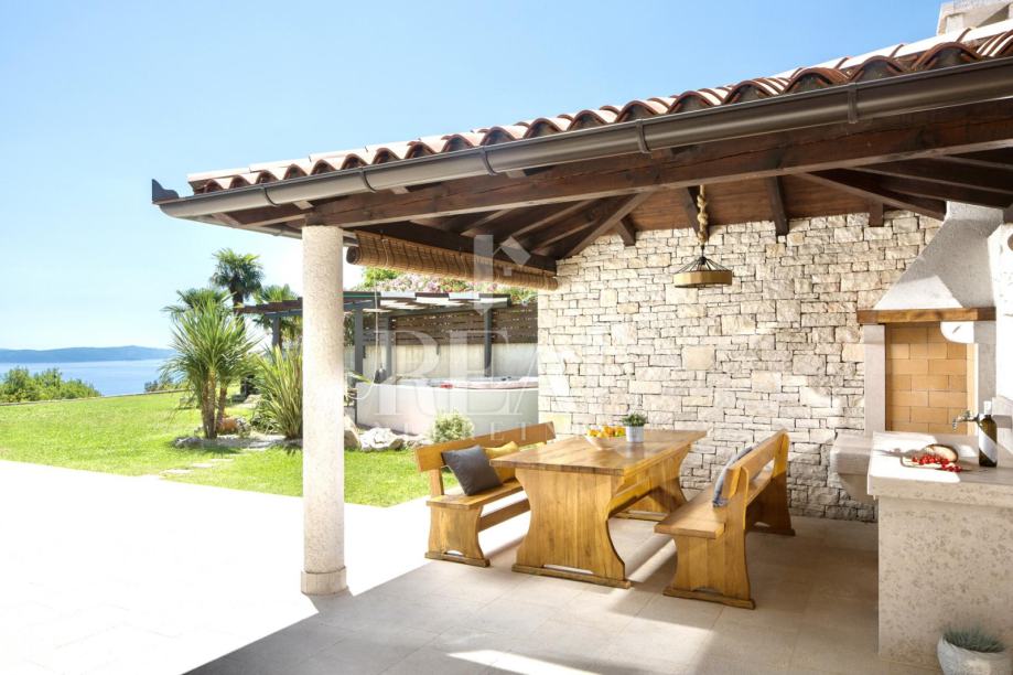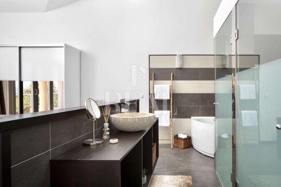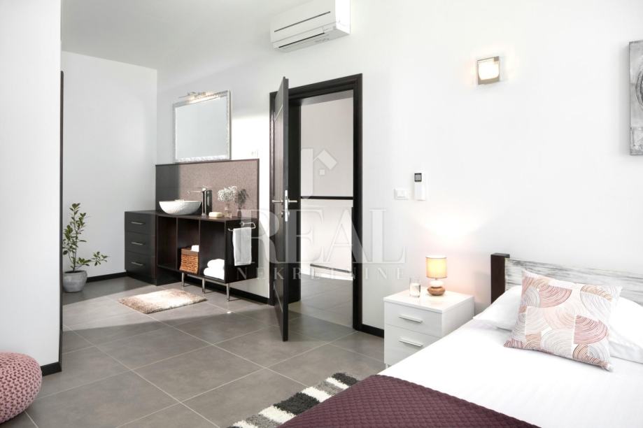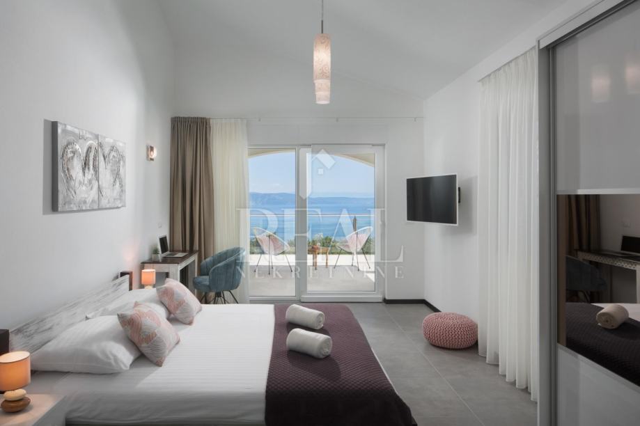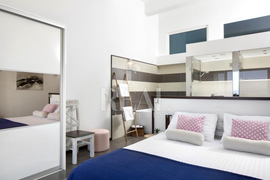 Nova i moderno uređena vila gostima nudi 3 spavaće sobe sa vlastitim kupaonicama, veliki dnevni boravak i blagavaonica sa predivnim pogledom na more te kompletno opremljena kuhinja sa svim aparatima.Probudite se ujutro uz pogled na more. Svaka soba ima balkon na kojem možete uživati u jutarnoj kavi, ili se možete spustiti na veliku terasu i kavu popiti uz bazen.Za opuštanje na raspolaganju je i jacuzzi.